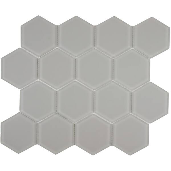3 in. Beehive 5 in. x 6 in. Hexagon Marsh Matte Glass Mesh-Mounted Mosaic Tile Sample