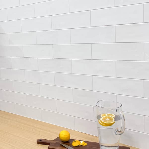 Bedouin Subway Tile 3 5/8 in. x 11 3/4 in. White Gloss Ceramic Wall Tile (9.9 sq. ft./Case)
