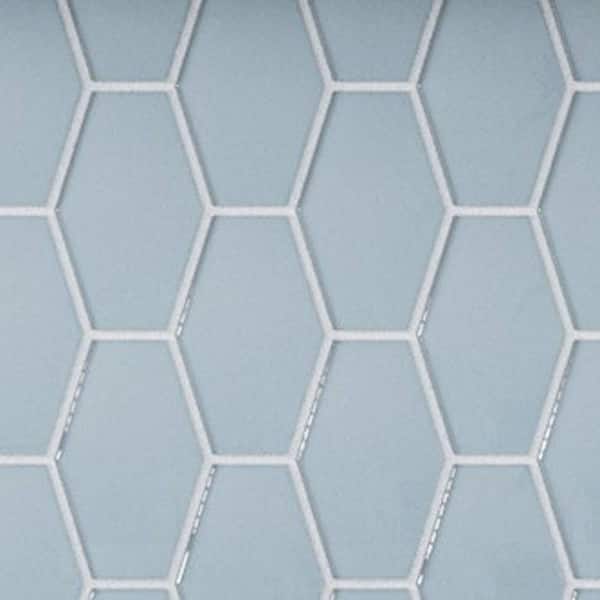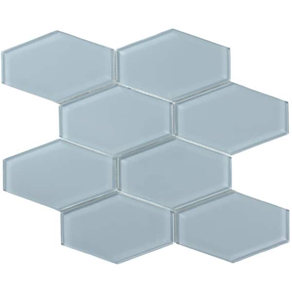 Long Hex 11 in. x 10.6 in. Aqua Blue Gloss Glass Mesh-Mounted Mosaic Tile (9.02 sq. ft./Case)