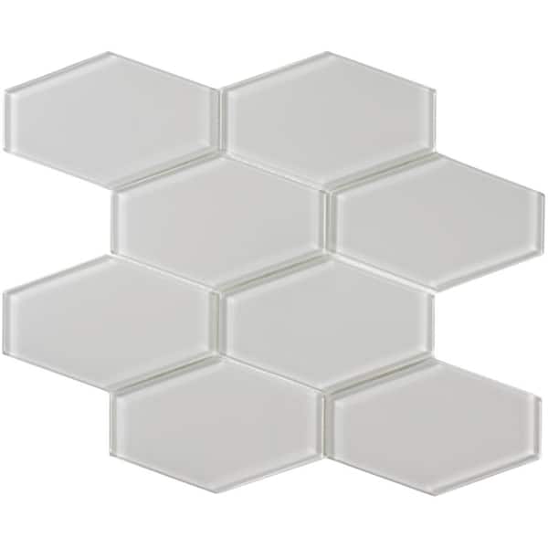 Long Hex 11 in. x 10.6 in. Misty Grey Gloss Glass Mesh-Mounted Mosaic Tile (9.02 sq. ft./Case)