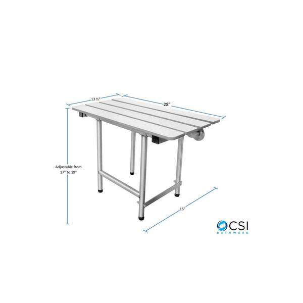 Rectangle 28 in. W x 15 in. D Folding Slatted Shower Bench with Swing Down Legs