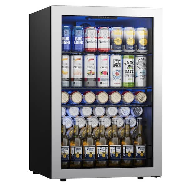21.1 in. Single Zone 182-Cans Beverage Cooler Freestanding/Countertop Refrigerator Adjustable Shelves in Stainless Steel
