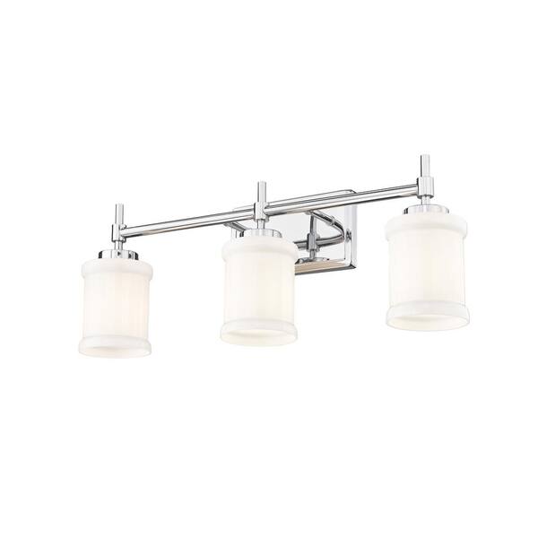 Cadoc 23.5 in. 3-Light Chrome Vanity-Light with Gloss Opal Glass Shade