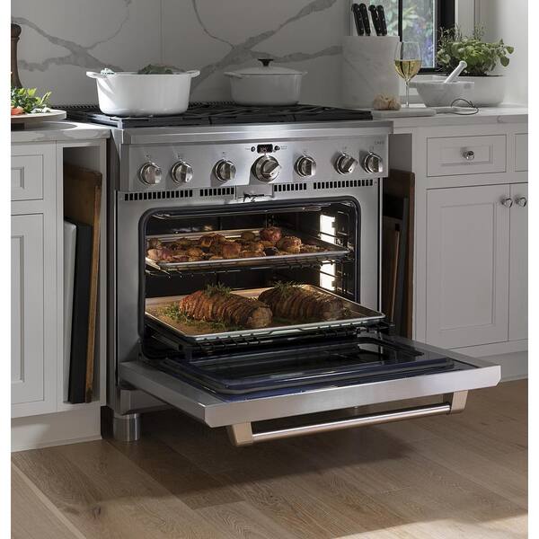 36 in. 6.2 cu. ft. Slide-In Gas Range with Self-Cleaning Professional Convection Oven in Stainless Steel