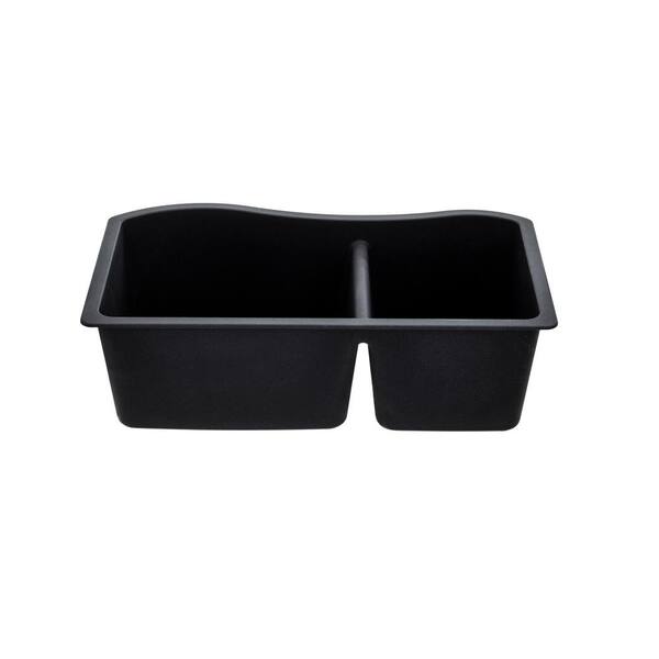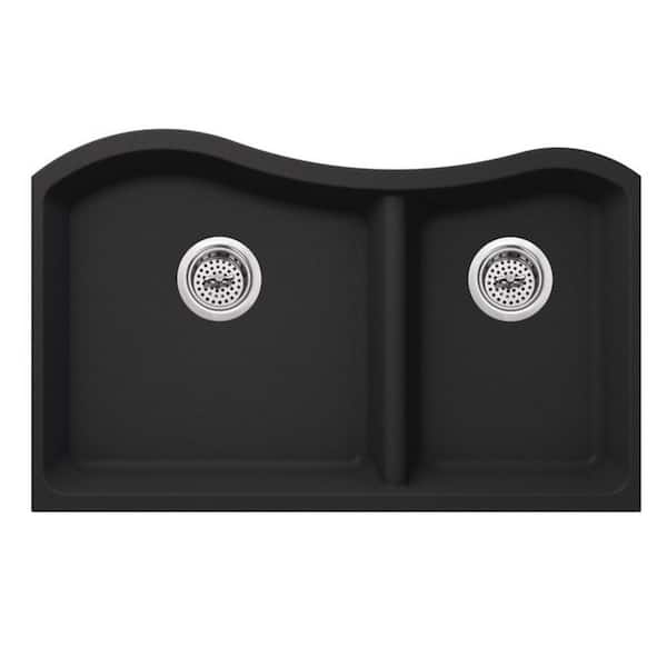 Undermount Quartz 32-1/2 in. 60/40 Double Kitchen Sink in Onyx Black