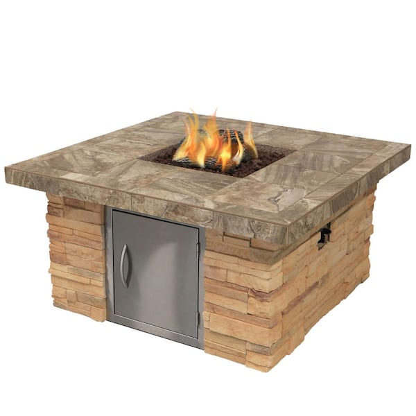 Stone Veneer Propane Square Gas Fire Pit