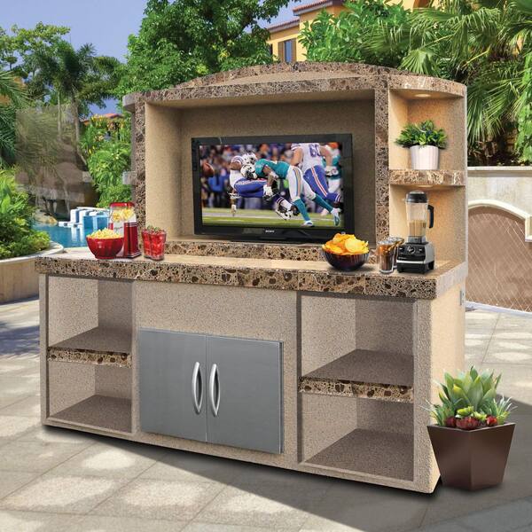 Stucco and Tile Outdoor Entertainment Center Serving Bar
