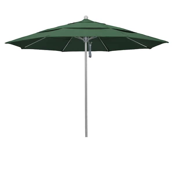11 ft. Gray Woodgrain Aluminum Commercial Market Patio Umbrella Fiberglass Ribs and Pulley Lift in Hunter Green Olefin