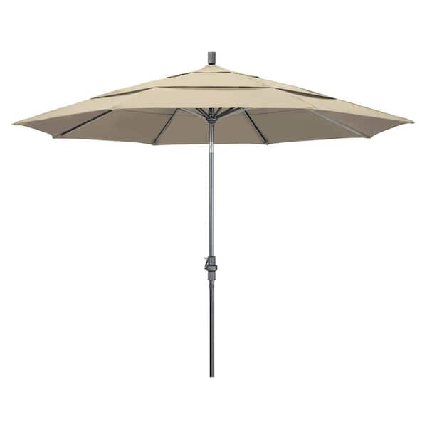 11 ft. Hammertone Grey Aluminum Market Patio Umbrella with Crank Lift in Antique Beige Sunbrella