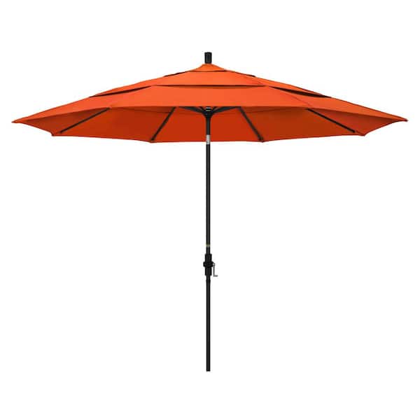 11 ft. Stone Black Aluminum Market Crank Lift Patio Umbrella in Melon Sunbrella