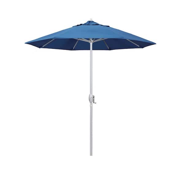 7.5 ft. Black Aluminum Market Patio Umbrella Auto Tilt in Frost Blue Olefin