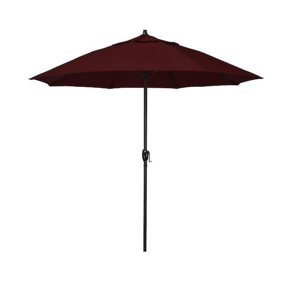 7.5 ft. Black Aluminum Market Patio Umbrella Fiberglass Ribs and Auto Tilt in Burgundy Pacifica
