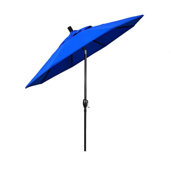 7.5 ft. Black Aluminum Pole Market Aluminum Ribs Push Tilt Crank Lift Patio Umbrella in Pacific Blue Sunbrella