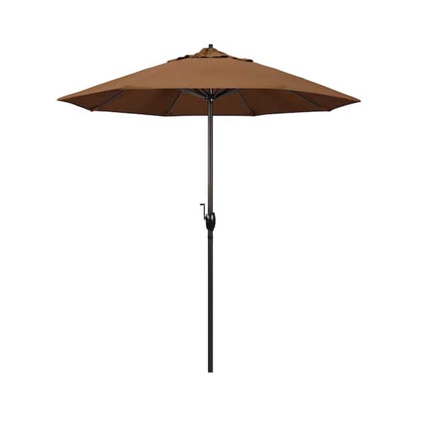 7.5 ft. Bronze Aluminum Market Auto-Tilt Crank Lift Patio Umbrella in Teak Sunbrella