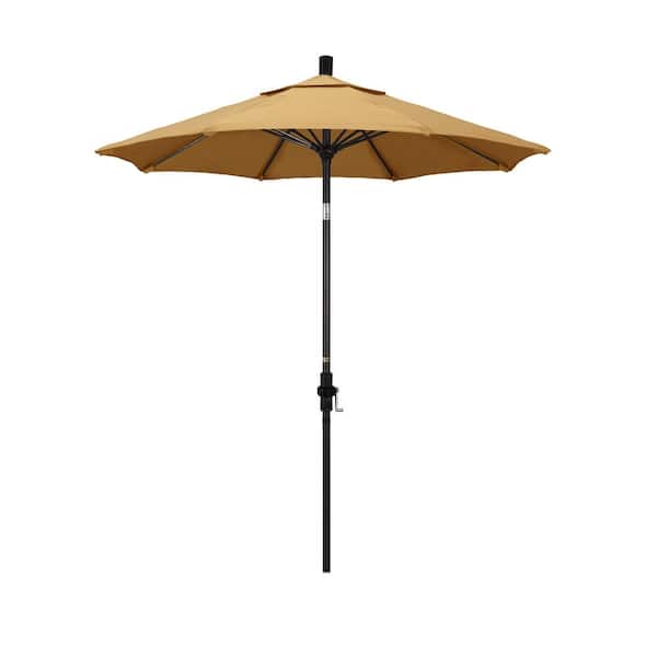 7.5 ft. Bronze Aluminum Pole Fiberglass Ribs Market Collar Tilt Crank Lift Outdoor Patio Umbrella in Wheat Sunbrella