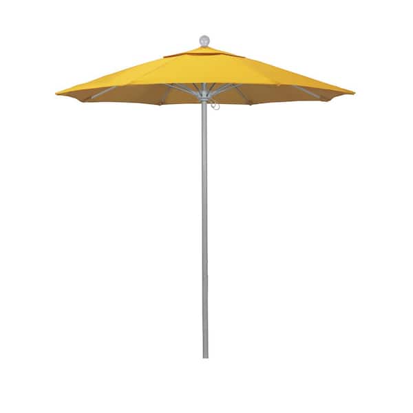7.5 ft. Gray Woodgrain Aluminum Commercial Market Patio Umbrella Fiberglass Ribs and Push Lift in Lemon Olefin