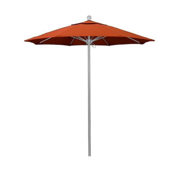 7.5 ft. Gray Woodgrain Aluminum Commercial Market Patio Umbrella Fiberglass Ribs and Push Lift in Sunset Olefin