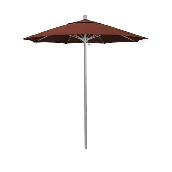 7.5 ft. Grey Woodgrain Aluminum Commercial Market Patio Umbrella Fiberglass Ribs and Push Lift in Terracotta Sunbrella