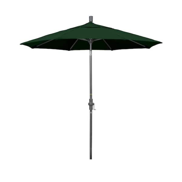 7.5 ft. Hammertone Grey Aluminum Market Patio Umbrella Collar Tilt Crank Lift in Hunter Green Pacifica
