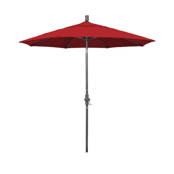 7.5 ft. Hammertone Grey Aluminum Market Patio Umbrella Collar Tilt Crank Lift in Jockey Red Sunbrella