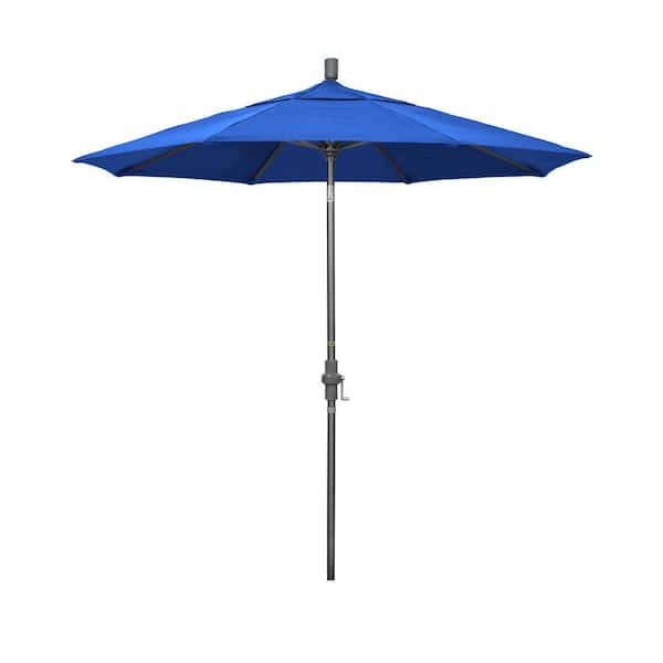 7.5 ft. Hammertone Grey Aluminum Market Patio Umbrella Collar Tilt Crank Lift in Navy White Cabana Stripe Olefin