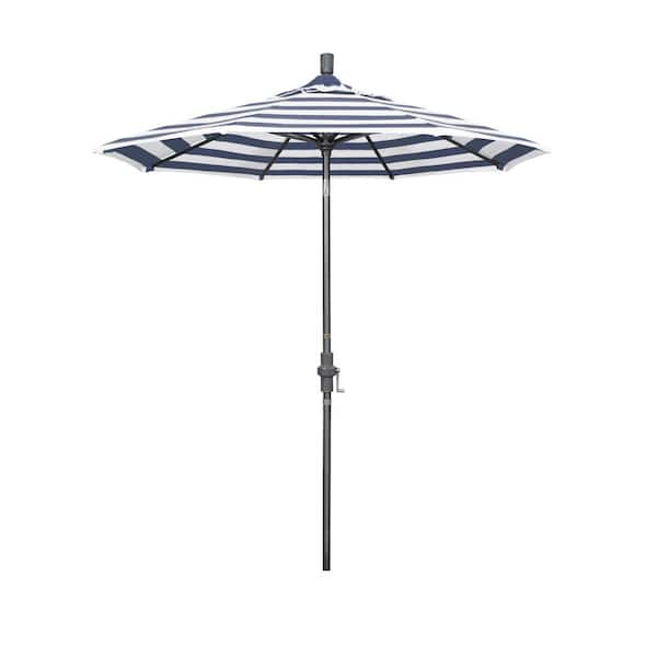 7.5 ft. Hammertone Grey Aluminum Market Patio Umbrella Collar Tilt Crank Lift in Royal Blue Olefin