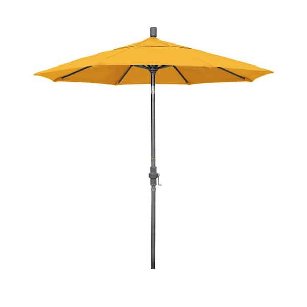 7.5 ft. Hammertone Grey Aluminum Market Patio Umbrella Collar Tilt Crank Lift in Yellow Pacifica