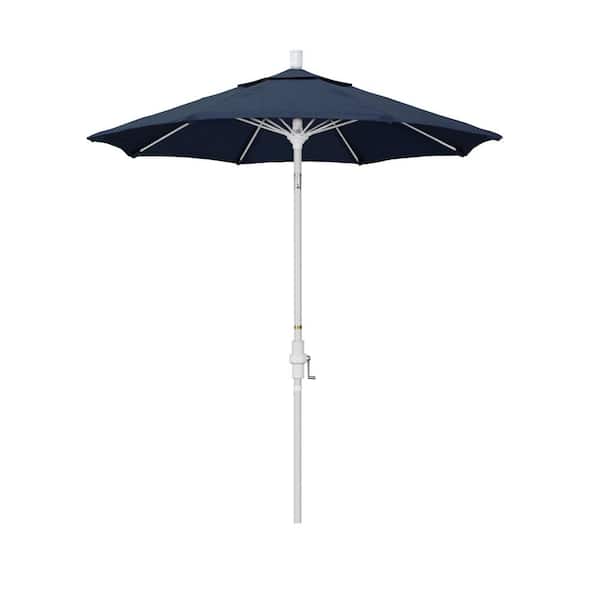 7.5 ft. Matted White Aluminum Market Collar Tilt Patio Umbrella Fiberglass Ribs and in Spectrum Indigo Sunbrella