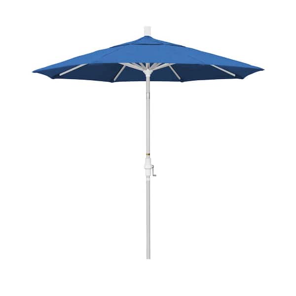 7.5 ft. Matted White Aluminum Market Patio Umbrella Collar Tilt Crank Lift in Regatta Sunbrella