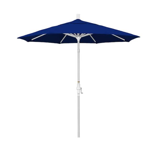 7.5 ft. Matted White Aluminum Market Patio Umbrella Collar Tilt Crank Lift in True Blue Sunbrella