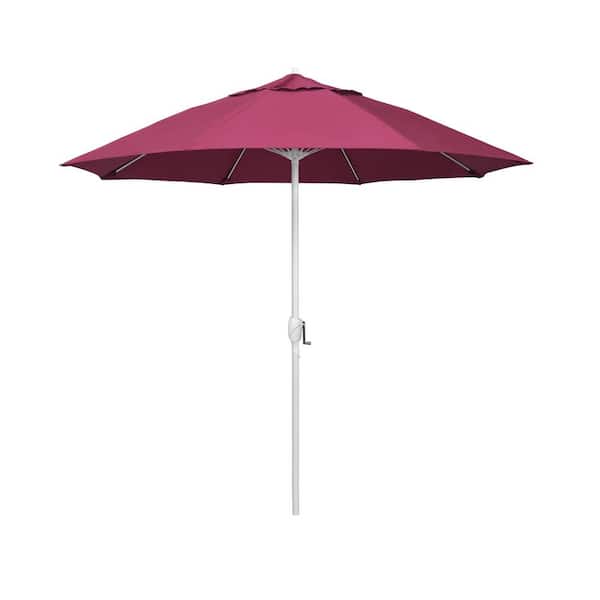 7.5 ft. Matted White Aluminum Market Patio Umbrella Fiberglass Ribs and Auto Tilt in Hot Pink Sunbrella