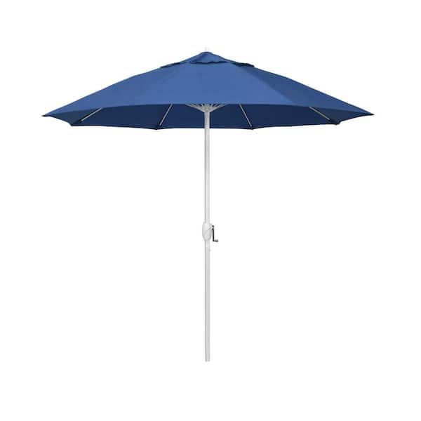 7.5 ft. Matted White Aluminum Market Patio Umbrella Fiberglass Ribs and Auto Tilt in Regatta Sunbrella