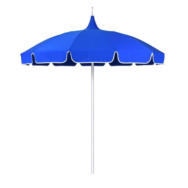 8.5 ft. Silver Aluminum Commercial Pagoda Market Patio Umbrella Fiberglass Ribs in Pacific Blue Sunbrella