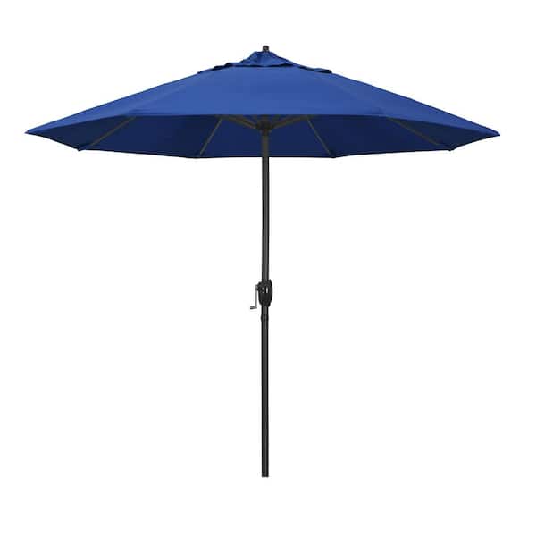 9 ft. Black Aluminum Market Patio Umbrella Auto Tilt in Pacific Blue Pacifica