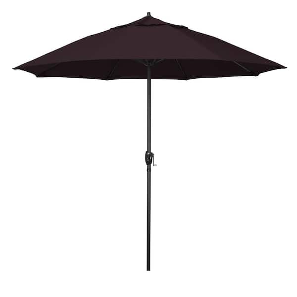 9 ft. Black Aluminum Market Patio Umbrella Fiberglass Ribs and Auto Tilt in Purple Pacifica