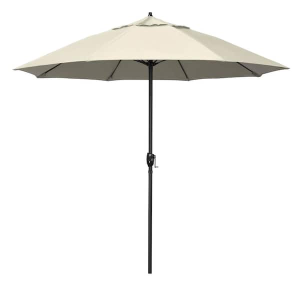 9 ft. Black Aluminum Market Patio Umbrella with Fiberglass Ribs and Auto Tilt in Antique Beige Olefin