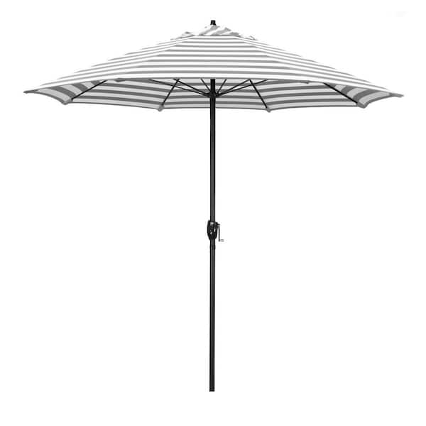 9 ft. Black Aluminum Market Patio Umbrella with Fiberglass Ribs and Auto Tilt in Gray White Cabana Olefin