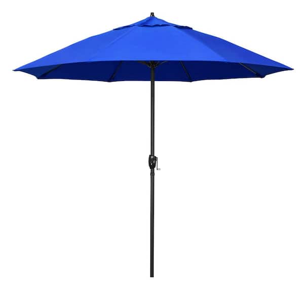 9 ft. Black Aluminum Market Patio Umbrella with Fiberglass Ribs and Auto Tilt in Royal Blue Olefin
