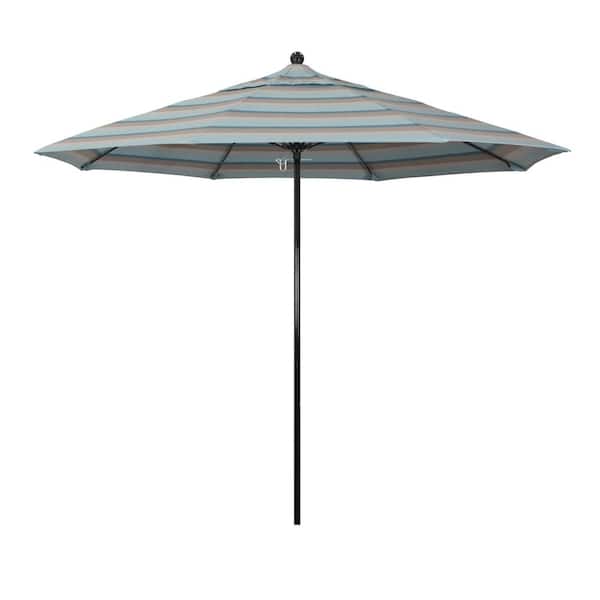 9 ft. Black Fiberglass Commercial Market Patio Umbrella with Fiberglass Ribs and Push Lift in Gateway Mist Sunbrella