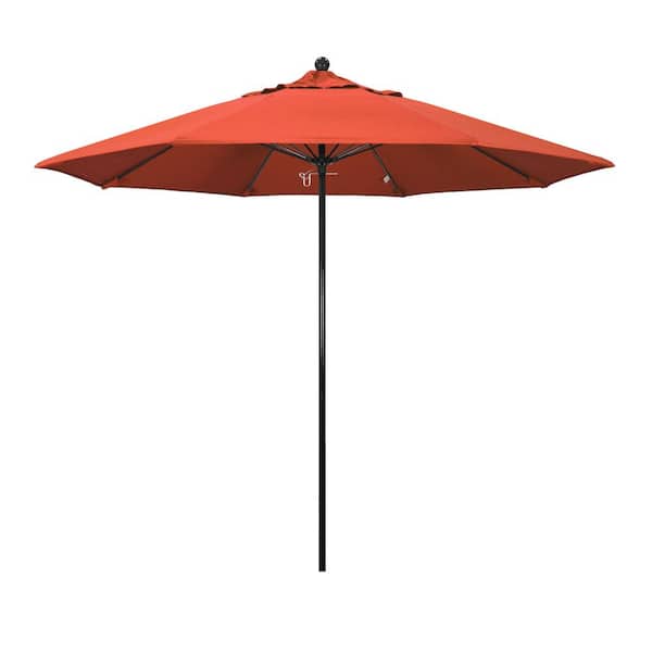 9 ft. Black Fiberglass Commercial Market Patio Umbrella with Fiberglass Ribs and Push Lift in Sunset Olefin