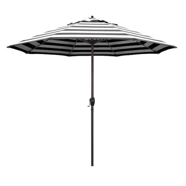 9 ft. Bronze Aluminum Market Auto-tilt Crank Lift Patio Umbrella in Cabana Classic Sunbrella