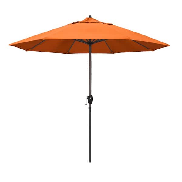 9 ft. Bronze Aluminum Market Auto-tilt Crank Lift Patio Umbrella in Tangerine Sunbrella