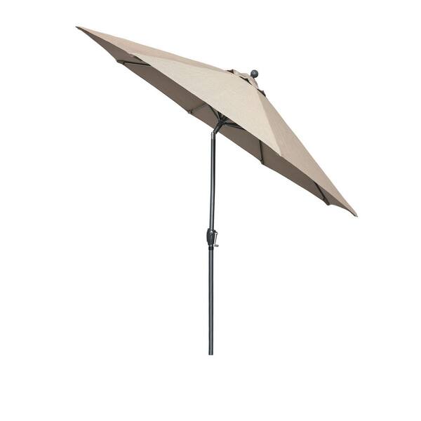 9 ft. Dark Ash Aluminum Market Patio Umbrella with Push Tilt Crank Lift in Geometric Beige Olefin