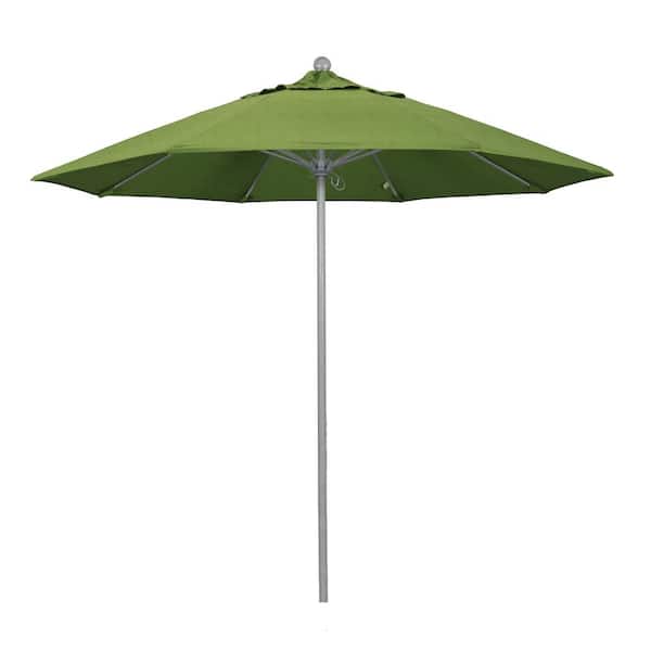 9 ft. Gray Woodgrain Aluminum Commercial Market Patio Umbrella Fiberglass Ribs Push Lift in Spectrum Cilantro Sunbrella