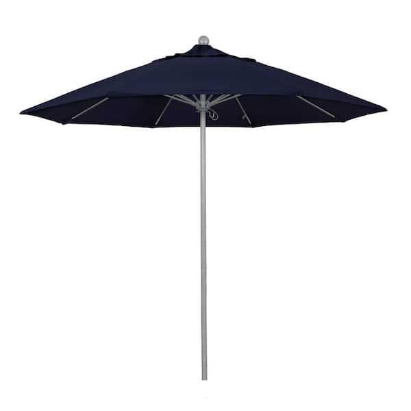 9 ft. Gray Woodgrain Aluminum Commercial Market Patio Umbrella Fiberglass Ribs and Push Lift in Navy Blue Olefin