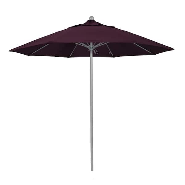 9 ft. Gray Woodgrain Aluminum Commercial Market Patio Umbrella Fiberglass Ribs and Push Lift in Purple Pacifica