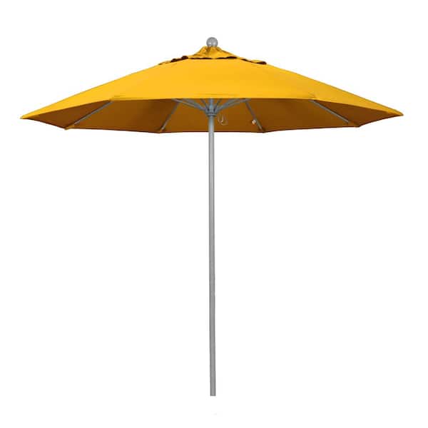9 ft. Gray Woodgrain Aluminum Commercial Market Patio Umbrella Fiberglass Ribs and Push Lift in Yellow Pacifica