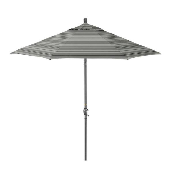 9 ft. Grey Aluminum Market Patio Umbrella with Crank Lift and Push-Button Tilt in Wellfleet Steel Pacifica Premium