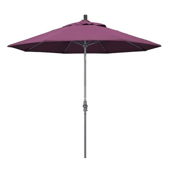 9 ft. Hammertone Grey Aluminum Market Patio Umbrella with Collar Tilt Crank Lift in Iris Sunbrella