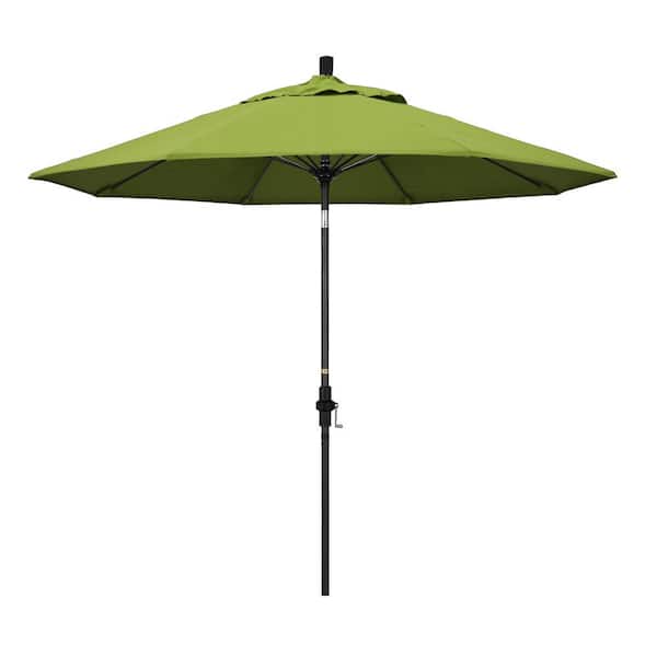 9 ft. Matted Black Aluminum Market Patio Umbrella with Fiberglass Ribs Collar Tilt Crank Lift in Macaw Sunbrella